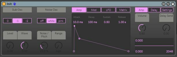 Noise Synth is a Max for Live device that uses filtered noise as it's main sound source and lets you decide how much noise/pitch you want to have in your sound.