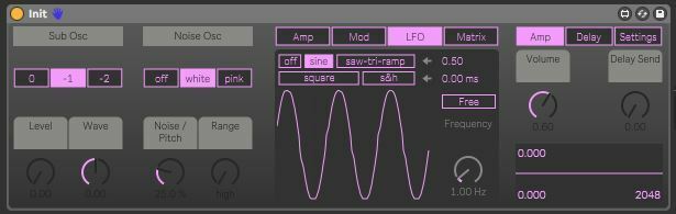 Noise Synth is a Max for Live device that uses filtered noise as it's main sound source and lets you decide how much noise/pitch you want to have in your sound.